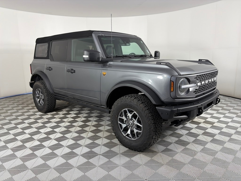 EQUIPMENT GROUP 334A HIGH/LUX PACKAGE Rear Parking Sensors, Power Outlet - Back Side of Center Floor Console, Auto-Dimming Interior Rearview Mirror, Dr & Pass Illuminated Sliding Visor Vanity Mirrors, Evasive Steering Assist, Heated Steering Wheel, Additional Sound Deadening, Information on Demand Panel, Wireless Charging Pad, Dual-Zone Electronic Automatic Temperature Control, air conditioning, Ford Co-Pilot360, Enables compatibility w/FordPass performance app w/off-road navigation, Auto High-Beam Headlamps, Pre-Collision Assist w/Automatic Emergency Braking, pedestrian detection, forward collision warning and dynamic brake support, Blind Spot Information System (BLIS), Cross-Traffic Alert, Rear View Camera, backup assist grid lines, Lane-Keeping System, Lane-Keeping Alert, Lane-Keeping, ENGINE: 2.7L ECOBOOST V6 electric brake boost, GVWR: 6,180 lbs, TRANSMISSION: 10-SPEED AUTOMATIC trail control, trail turn assist and trail one-pedal driving, 4.46 Axle Ratio. Ford Badlands with Carbonized Gray exterior and Black Onyx interior features a V6 Cylinder Engine with 315 HP at 5500 RPM*.