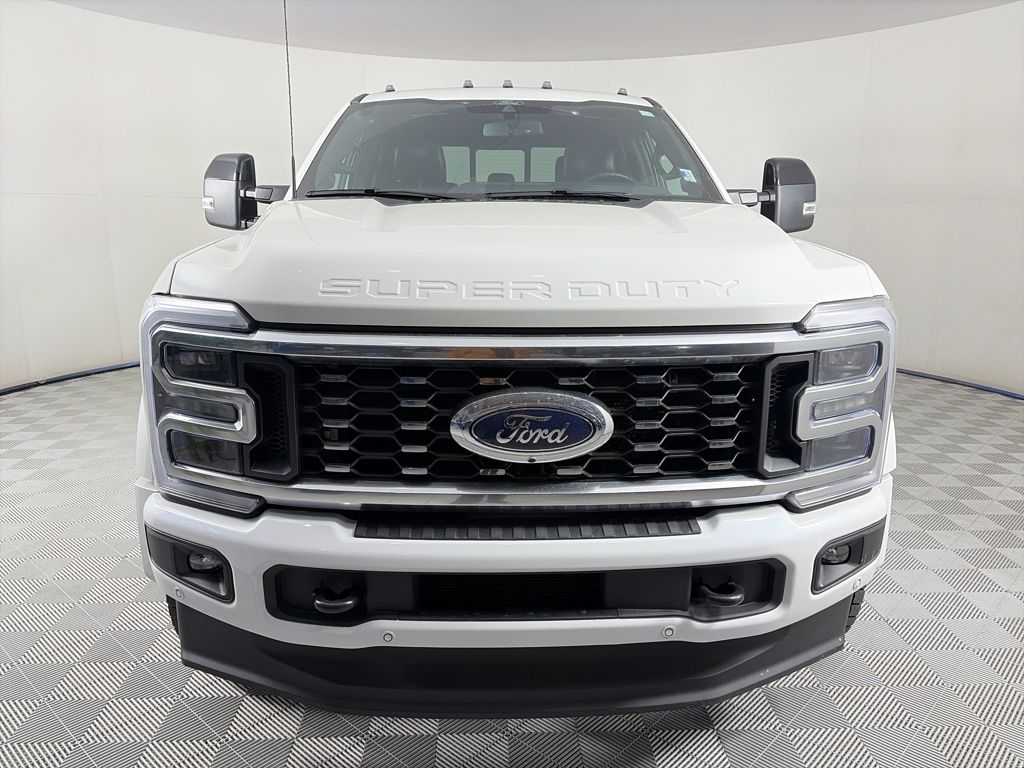 TWIN PANEL POWER MOONROOF map lights and moonroof switches, TRANSMISSION: TORQSHIFT 10-SPEED AUTOMATIC SelectShift and selectable drive modes: normal, eco, slippery roads, tow/haul and off-road (STD). Ford Platinum with Star White Metallic Tri-Coat exterior and Black Onyx interior features a 8 Cylinder Engine with 475 HP at 2600 RPM*.