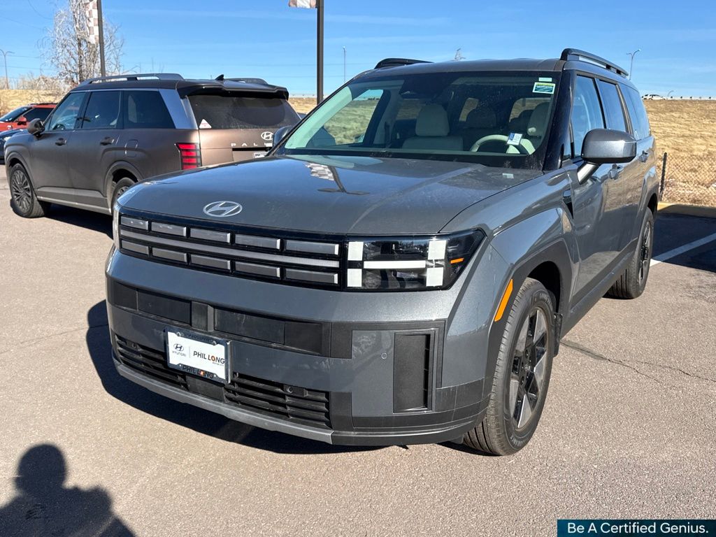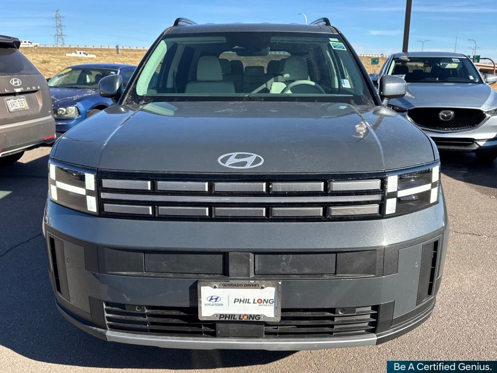 Option Group 01, Hyundai Certified Used Vehicles Certified, I4, 18" x 7.5J Alloy Wheels, 3rd row seats: bench, 4-Wheel Disc Brakes, 6 Speakers, ABS brakes, Air Conditioning, Alloy wheels, AM/FM radio: SiriusXM, Apple CarPlay & Android Auto, Auto High-beam Headlights, Automatic temperature control, Brake assist, Bumpers: body-color, Cargo Cover/Screen, Cargo Net, Cargo Tray, Carpeted Floor Mats, Delay-off headlights, Driver door bin, Driver vanity mirror, Dual front impact airbags, Dual front side impact airbags, Electronic Stability Control, Emergency communication system, Exterior Parking Camera Rear, First Aid Kit, Four wheel independent suspension, Front anti-roll bar, Front Bucket Seats, Front Center Armrest, Front dual zone A/C, Front reading lights, Fully automatic headlights, H-Tex Leatherette Seat Trim, Heated door mirrors, Heated Front Bucket Seats, Heated front seats, Illuminated entry, Knee airbag, Leather steering wheel, Low tire pressure warning, Mudguards, Occupant sensing airbag, Outside temperature display, Overhead airbag, Overhead console, Panic alarm, Passenger door bin, Passenger vanity mirror, Power door mirrors, Power driver seat, Power Liftgate, Power steering, Power windows, Radio: AM/FM/HD Display Audio, Rear anti-roll bar, Rear seat center armrest, Rear side impact airbag, Rear window defroster, Rear window wiper, Remote keyless entry, Roadside Assistance Kit, Security system, Speed control, Speed-sensing steering, Split folding rear seat, Spoiler, Steering wheel mounted audio controls, Tachometer, Telescoping steering wheel, Tilt steering wheel, Traction control, Trip computer, Turn signal indicator mirrors, and Variably intermittent wipers.