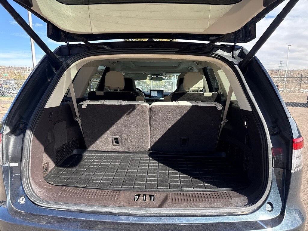 Chalet Theme (30-Way Perfect Position Seats w/Active Motion and Savannah Leather Heated/Ventilated Seats (76A)), Class IV Trailer Tow Package (4-Pin & 7-Pin Connectors, Blind Spot Information System, Class IV Hitch & Wiring, Smart Trailer Tow, and Trailer Sway Control), Dynamic Handling Package (Adaptive Suspension w/Road Preview and Air Glide Suspension w/Dynamic Lower Entry), Equipment Group 800A, Lincoln Signature Cert - Lincoln Black Label Prog Certified, 28 Speakers, 3.58 Axle Ratio, 3rd row seats: split-bench, 4-Wheel Disc Brakes, ABS brakes, Adaptive suspension, Air Conditioning, All-Weather 1st & 2nd Row Floor Liners (16A), Alloy wheels, AM/FM radio: SiriusXM, Audio memory, Auto High-beam Headlights, Auto-dimming door mirrors, Auto-dimming Rear-View mirror, Automatic temperature control, Brake assist, Bumpers: body-color, Compass, Delay-off headlights, Door auto-latch, Driver door bin, Driver vanity mirror, Dual front impact airbags, Dual front side impact airbags, Electronic Stability Control, Emergency communication system, Four wheel independent suspension, Front anti-roll bar, Front Bucket Seats, Front Center Armrest, Front dual zone A/C, Front fog lights, Front reading lights, Full Rear Console, Fully automatic headlights, Garage door transmitter, Head restraints memory, Heads-Up Display, Heated door mirrors, Heated front seats, Heated rear seats, Heated steering wheel, HVAC memory, Illuminated entry, Knee airbag, Leather steering wheel, Low tire pressure warning, Mahogany Khaya Appliques w/Etched Logo, Mahogany Red Floor Carpet/Mats, Mahogany Red Headliner, Mahogany Red Leather-Wrapped Interior, Memory seat, Navigation System, Occupant sensing airbag, Outside temperature display, Overhead airbag, Overhead console, Panic alarm, Passenger door bin, Passenger vanity mirror, Power adjustable front head restraints, Power door mirrors, Power driver seat, Power Liftgate, Power moonroof: Panoramic Vista Roof, Power passenger seat, Power steering, Power windows, Radio data system, Radio: Revel Ultima 3D Audio System w/28 Speakers, Rain sensing wipers, Rear air conditioning, Rear anti-roll bar, Rear audio controls, Rear dual zone A/C, Rear reading lights, Rear window defroster, Rear window wiper, Remote keyless entry, Savannah Leather Heated/Ventilated Seats (76E), Security system, SiriusXM Radio, Speed control, Speed-Sensitive Wipers, Split folding rear seat, Spoiler, Steering wheel memory, Steering wheel mounted A/C controls, Steering wheel mounted audio controls, SYNC 3 Communication & Entertainment System, Tachometer, Telescoping steering wheel, Tilt steering wheel, Traction control, Trip computer, Turn signal indicator mirrors, Variably intermittent wipers, Ventilated front seats, Ventilated rear seats, and Wheels: 22" Bright-Machined Aluminum.