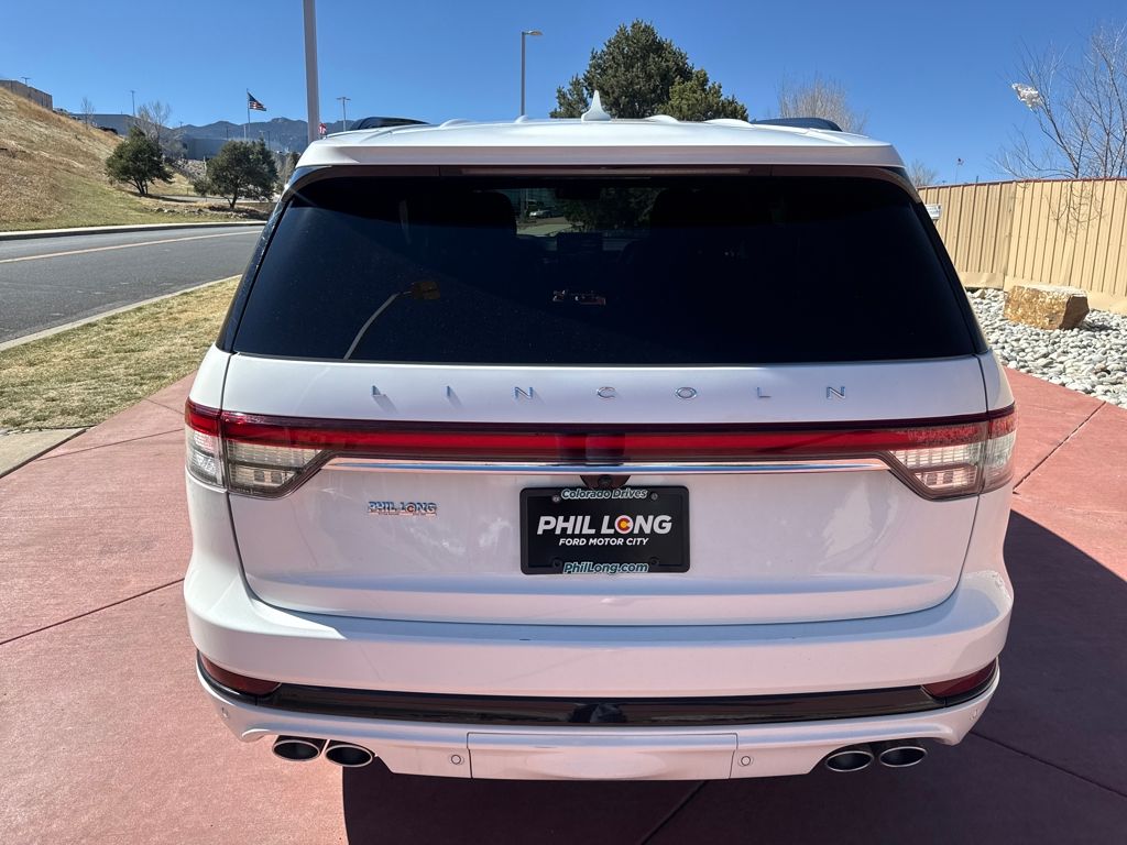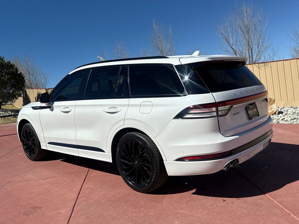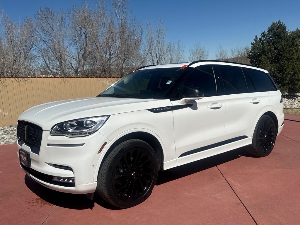 Class IV Trailer Tow Package (4-Pin & 7-Pin Connectors, Blind Spot Information System, Class IV Hitch & Wiring, Smart Trailer Tow, and Trailer Sway Control), Dynamic Handling Package (Air Glide Suspension w/Dynamic Lower Entry), Elements Package Plus (Auto Air Refresh, Auto Heated/Ventilated Driver & Passenger Seats, Heated Steering Wheel, Heated VisioBlade Wipers, and Heated/Ventilated 2nd Row Outboard Seats), Equipment Group 201A (Head-Up Display and Phone As A Key), Illumination Package (Adaptive Pixel LED Headlamps, Illuminated Lincoln Star in Grille, and LED Fog Lamps), Jet Package (Black Exterior Elements, Body-Color Exterior Elements, and Wheels: 22" Black Aluminum), Lincoln Co-Pilot360 1.5 Plus (Active Park Assist 2.0, Evasive Steering Assist, Intelligent Adaptive Cruise Control, and Reverse Brake Assist), Luxury Package (30-Way Perfect Position Seats w/Active Motion, Radio: Revel Ultima 3D Audio System w/28 Speakers, and Rear Door Sunshades), Lincoln Certified, Navigation System, 14 Speakers, 3.58 Axle Ratio, 3rd row seats: split-bench, 4-Wheel Disc Brakes, ABS brakes, Adaptive suspension, Air Conditioning, All-Weather 1st & 2nd Row Floor Liners (16A), All-Weather 3rd Row Floor Mats w/Captain Seats (DIO), Alloy wheels, AM/FM radio: SiriusXM, Audio memory, Auto High-beam Headlights, Auto-dimming door mirrors, Auto-dimming Rear-View mirror, Automatic temperature control, Brake assist, Bumpers: body-color, Compass, Delay-off headlights, Driver door bin, Driver vanity mirror, Dual front impact airbags, Dual front side impact airbags, Electronic Stability Control, Emergency communication system, First Aid Kit, Four wheel independent suspension, Front anti-roll bar, Front Bucket Seats, Front Center Armrest, Front dual zone A/C, Front reading lights, Full Rear Console, Fully automatic headlights, Garage door transmitter, Hands-Free Liftgate Delete, Heated door mirrors, Heated front seats, HVAC memory, Illuminated entry, Knee airbag, Leather steering wheel, Low tire pressure warning, Memory seat, Occupant sensing airbag, Outside temperature display, Overhead airbag, Overhead console, Panic alarm, Passenger door bin, Passenger vanity mirror, Power door mirrors, Power driver seat, Power Liftgate, Power moonroof: Panoramic Vista Roof, Power passenger seat, Power steering, Power windows, Premium Lthr Heated/Ventilated Fnt Captain's Chairs, Radio data s