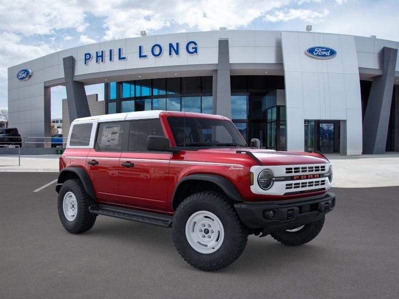 Ruby Red Metallic Tinted Clearcoat 2025 Ford Bronco Heritage Edition 4WD 10-Speed Automatic 2.7L EcoBoost V6 Bronco Heritage Edition, 4D Sport Utility, 2.7L EcoBoost V6, 10-Speed Automatic, 4WD, Ruby Red Metallic Tinted Clearcoat, Xv Plaid Cloth Navy Pier Seats Black Onyx Interior Cloth.