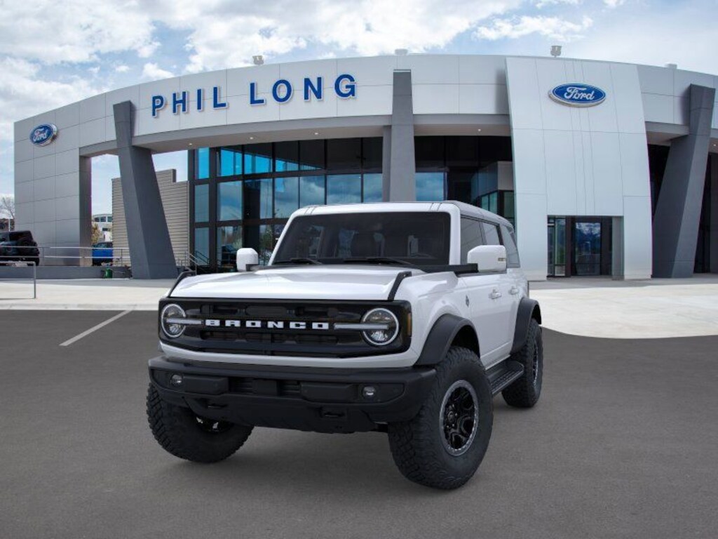 Oxford White 2025 Ford Bronco Outer Banks 4WD 10-Speed Automatic 2.7L EcoBoost V6 Bronco Outer Banks Advanced, 4D Sport Utility, 2.7L EcoBoost V6, 10-Speed Automatic, 4WD, Oxford White, 2v Lth-Trm/Vinyl Smoked Truffle Black Onyx Interio Vinyl.