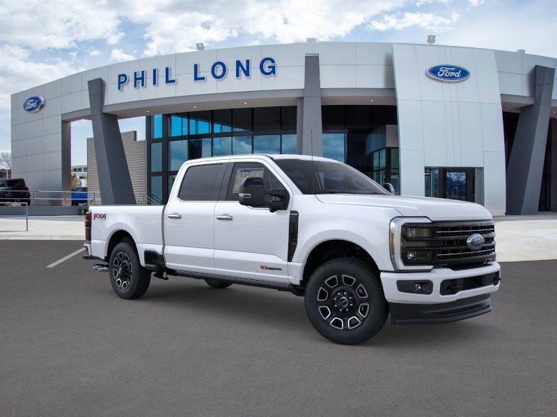 Star White Metallic Tri-Coat 2025 Ford F-350SD Platinum 4WD 10-Speed Automatic 6.7L High Output Power Stroke V8 Diesel F-350SD Platinum, 4D Crew Cab, 6.7L High Output Power Stroke V8 Diesel, 10-Speed Automatic, 4WD, Star White Metallic Tri-Coat, 7b Leather 40/Console/40 Seat Black Onyx Leather.