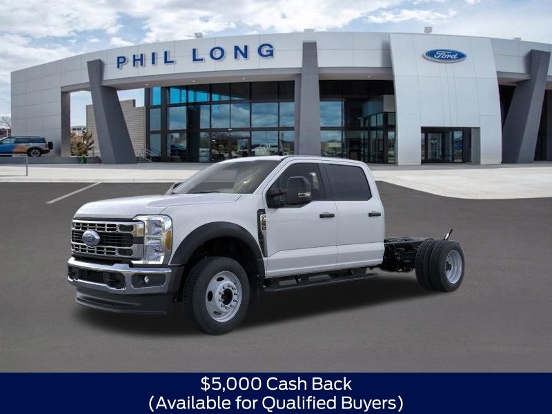 Oxford White 2025 Ford F-550SD XLT DRW 4WD 10-Speed Automatic 7.3L V8 PFI OHV 16V Federal 335hp F-550 SuperDuty XLT DRW, 4D Crew Cab/Chassis, 7.3L V8 PFI OHV 16V Federal 335hp, 10-Speed Automatic, 4WD, Oxford White, 3s 40/20/40 Cloth Seat Medium Dark Slate Cloth.