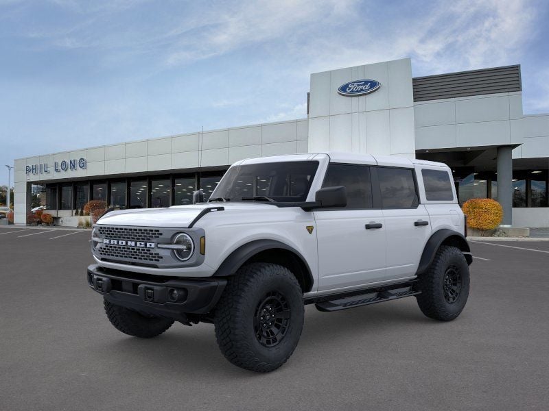SASQUATCH PACKAGE Wheels: 17 Matte Black Alloy, High Clearance Suspension, 4.7 Final Drive Ratio, electronic-locking front and rear axle, Front Stabilizer Disconnect, Tires: LT315/70R17 Rugged-Terrain, Position-Sensitive Bilstein Shock Absorbers, ENGINE: 2.7L ECOBOOST V6 GVWR: 6,180 lbs, PAINTED HARD TOP Hard Top Sound Deadening Headliner, Rear-Window Defroster & Washer, TRANSMISSION: 10-SPEED AUTOMATIC trail control, trail turn assist and trail one-pedal driving, 4.46 Axle Ratio, EQUIPMENT GROUP 332A MID PACKAGE Rear Parking Sensors, Pro Power Onboard - 400W, Back side of center floor console, Dual Smart Charging USB Ports, Front Row Heated Seats, Dr & Pass Illuminated Sliding Visor Vanity Mirrors, Heated Steering Wheel, Dual-Zone Electronic Automatic Temperature Control, air conditioning, Ford Co-Pilot360, Auto High-Beam Headlamps, Pre-Collision Assist w/Automatic Emergency Braking, pedestrian detection, forward collision warning and dynamic brake support, Blind Spot Information System (BLIS), Cross-Traffic Alert, Rear View Camera, backup assist grid lines, Lane-Keeping System, Lane-Keeping Alert, Lane-Keeping Aid and Driver Alert, Connected Navigation, Ford connectivity package, pinch-to-zoom capability, live traffic, predictive destinations and route guidance, RAPTOR-STYLE RUNNING BOARD Replaces the standard rock rails, SIRIUSXM W/360L (3-YEAR PLAN) SiriusXM w/360L (3-year plan), also referred to as an extended service subscription plan by SiriusXM, is included w/your newly purchased or leased vehicle will stop at the end of your subscription period unless you decide to continue service, Plan is non-transferrable and non-refundable, If you do not wish to enjoy your subscription, you can cancel by calling the number below, All SiriusXM services require a subscription, each sold separately by SiriusXM after the service term, Service subject to the SiriusXM customer agreement and privacy policy, visit siriusxm.com for complete terms and how to cancel which includes online methods or calling 1-866-635-2349, Some services and features are subject to device capabilities and location availability, Satellite. Ford Badlands with Oxford White exterior and Black Onyx interior features a V6 Cylinder Engine with 315 HP at 5500 RPM*.