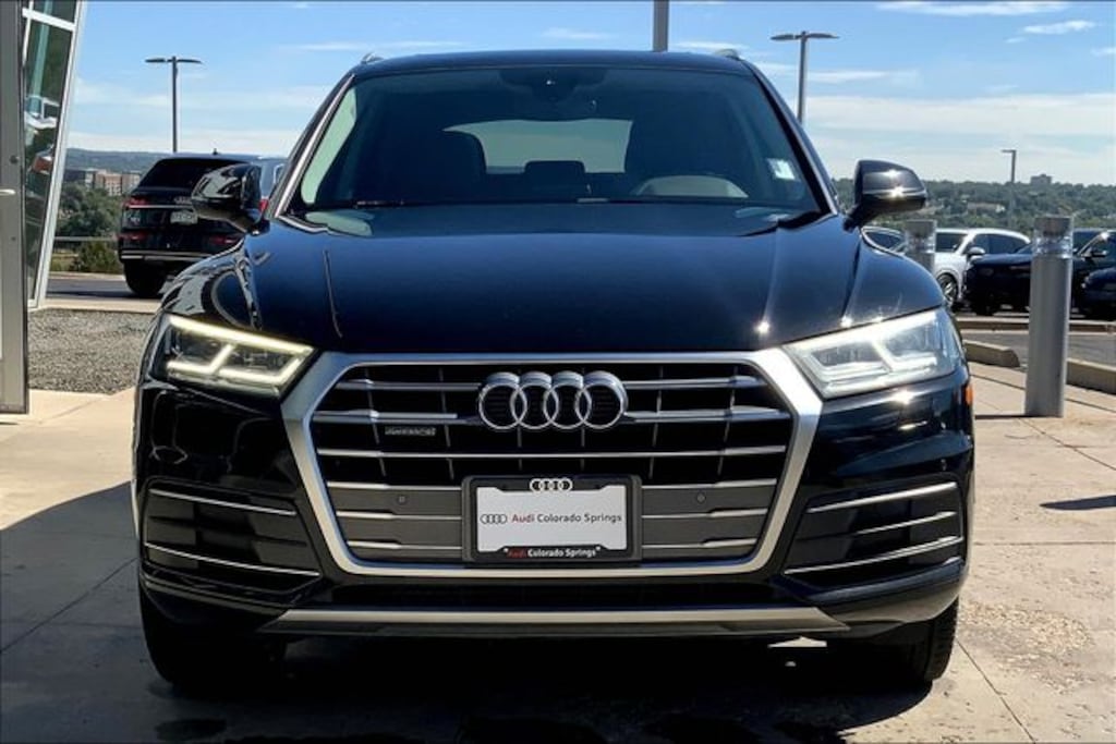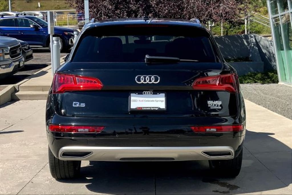 Mythos Black Metallic 2018 Audi Q5 2.0T Premium quattro quattro 7-Speed Automatic S tronic 2.0L TFSI Black w/Leather Seating Surfaces, 12-Way Power Front Sport Seats, 3-Step Front Seat Ventilation, 3-Step Heated Front Seats, Audi Advanced Key, Audi Connect CARE, Audi Connect PRIME & PLUS, Audi Side Assist w/Pre Sense Rear, Audi Virtual Cockpit, Bang & Olufsen 3D Sound System, Driver Seat Memory, Full LED Headlights, Heated Auto-Dimming & Power-Adjustable Mirrors, High Gloss Window Surrounds, Manual Rear Side Window Sunshades, Navigation Package, Panoramic Sunroof w/Tilt/Slide & Power Sunshade, Parking System Plus (Front/Rear Acoustic Sensors), Premium Plus Package, Radio: MMI Navigation Plus System, Rear Cross Traffic Assist, SiriusXM All Access Service, Stainless Steel Door Sills, Vehicle Exit Assist, Warm Weather Package, Wheels: 8" x 20" 5-Spoke Segment Design.