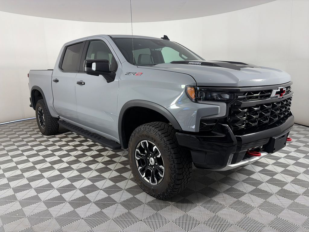 TECHNOLOGY PACKAGE includes (DRZ) Rear Camera Mirror and (UV6) 15 Diagonal Head-Up Display (Includes (KSG) Adaptive Cruise Control and (N38) Power Tilt/Telescoping steering column.), SUNROOF, POWER on Crew Cab models, LPO, OFF-ROAD HIGH CLEARANCE STEPS (dealer-installed), TAILGATE, MULTI-FLEX with six functional load/access features, NOTE: Auto release can be disabled if ball hitch is installed. See Owners manual for details, AUDIO SYSTEM, CHEVROLET INFOTAINMENT 3 PREMIUM SYSTEM with Google built-in compatibility (select service plan required, terms and limitations apply) including navigation capability, 13.4 diagonal HD color touchscreen, includes multi-touch display, AM/FM stereo, Bluetooth® streaming audio for music and most phones; featuring Wireless Apple CarPlay® and Wireless Android Auto® capability for compatible phones, advanced voice recognition, in-vehicle apps, personalized profiles for infotainment and vehicle settings (STD), ENGINE, DURAMAX 3.0L TURBO-DIESEL I6 (305 hp [227 kW] @ 3750 rpm, 495 lb-ft of torque [671 Nm] @ 2750 rpm) (STD) (Includes (KW5) 220-amp alternator and (K05) engine block heater.), TRANSMISSION, 10-SPEED AUTOMATIC with Electronic Transmission Range Selector (ETRS), electronically controlled with overdrive, tow/haul mode and steering column paddle shifters. Includes Cruise Grade Braking and Powertrain Grade Braking (STD). Chevrolet ZR2 with Slate Gray Metallic exterior and Jet Black/Graystone interior features a Straight 6 Cylinder Engine with 305 HP at 3750 RPM*.