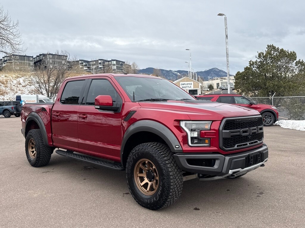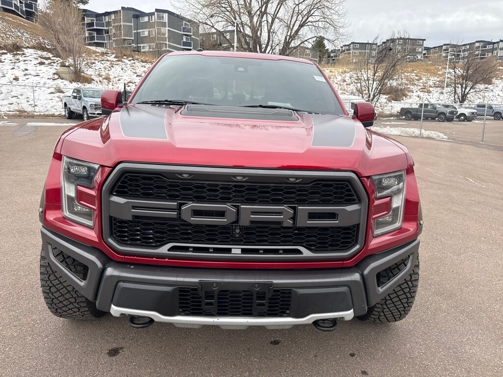 Equipment Group 802A Luxury (10-Way Power Driver & Passenger Seats, 360 Degree Camera, 4.10 Front Axle w/Torsen Differential, Advanced Security Pack, Ambient Lighting, BLIS Blind Spot Information System, Dual-Zone Electronic Automatic Temperature Control, Inflatable Rear Safety Belts, Integrated Trailer Brake Controller, Intelligent Access w/Push-Button Start, LED Box Lighting, LED Side-Mirror Spotlights, Memory System (Seat, Pedal, Exterior Mirror), Power Glass Heated Sideview Mirrors, Power Tilt/Telescoping Steering Column w/Memory, Power-Adjustable Pedals, Power-Sliding Rear Window, Pro Trailer Backup Assist, Radio: Sony Single CD w/HD & SiriusXM Satellite, Remote Start System w/Remote Tailgate Release, SYNC 3, SYNC Connect, Universal Garage Door Opener, and Voice-Activated Navigation), Exterior Graphics Package, Hood Graphics Package, Raptor Technology Package (Adaptive Cruise Control w/Collision Mitigation, Auto High Beam, and Lane-Keeping System), 4WD, 17" Cast Aluminum Wheels, 4-Wheel Disc Brakes, 7 Speakers, 8-Way Power Driver's Seat w/Power Lumbar, ABS brakes, Air Conditioning, Alloy wheels, AM/FM radio: SiriusXM, Auto-dimming Rear-View mirror, Brake assist, CD player, Compass, Delay-off headlights, Driver door bin, Driver vanity mirror, Dual front impact airbags, Dual front side impact airbags, Electronic Locking w/4.10 Axle Ratio, Electronic Stability Control, Exterior Parking Camera Rear, Foldable Pickup Box Bed Extender, Front anti-roll bar, Front Bucket Seats, Front Center Armrest, Front fog lights, Front reading lights, Front wheel independent suspension, Fully automatic headlights, Heated Leather 40/Console/40 Front Seats, Illuminated entry, Leather steering wheel, Low tire pressure warning, Occupant sensing airbag, Outside temperature display, Overhead airbag, Overhead console, Panic alarm, Passenger door bin, Passenger vanity mirror, Power door mirrors, Power driver seat, Power steering, Power windows, Radio data system, Rear Parking Sensors, Rear reading lights, Rear step bumper, Rear window defroster, Remote keyless entry, Security system, Speed control, Speed-sensing steering, Split folding rear seat, Spray-In Bedliner (Pre-Installed), Steering wheel mounted audio controls, SYNC, Tachometer, Tailgate Applique, Tailgate Step w/Tailgate Lift Assist, Telescoping steering wheel, Tilt steering wheel, Traction control, Trip computer, Twin Panel Moonroof, Unique Cloth/Leather Trim Seats, and Variably intermittent wipers.