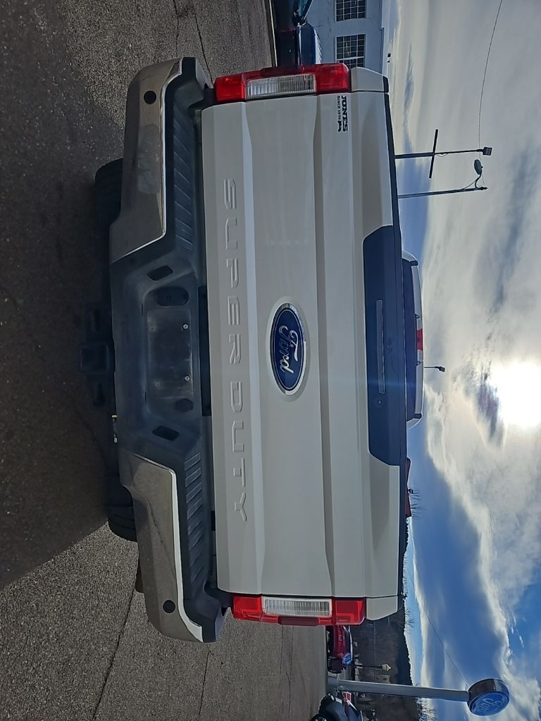 ENGINE: 6.7L 4V OHV POWER STROKE V8 TURBO DIESEL B20 manual push-button engine-exhaust braking and intelligent oil-life monitor, 48 Gallon Fuel Tank, Extra Heavy-Duty 220 Amp Alternator, GVWR: 11,500 lb Payload Package, 3.31 Axle Ratio, Dual 78-AH 750 CCA Batteries, LARIAT ULTIMATE PACKAGE Power Heated/Cooled Driver Seat w/Memory, PowerScope Trailer Tow Mirrors w/Memory, Automatic High Beam, rain-sensing windshield wipers, EASY ENTRY®/Exit Memory Drivers Seat Feature, Tailgate Step & Handle, LED Box Lighting, LED Center High-Mounted Stop Lamp (CHMSL), Intelligent Access w/Push-Button Start, Power Heated/Cooled Passenger Seat, Voice-Activated Navigation, HD and SiriusXM Traffic and Travel Link, NOTE: SiriusXM Traffic and Travel Link includes a, Services are not available in Alaska and Hawaii, Memory Power-Adjustable Pedals, Remote Start System, Ambient Lighting - Fixed Color, Power Telescoping/Tilt Steering Wheel/Column, heat, memory and audio controls, Remote Tailgate Release, TWIN PANEL POWER MOONROOF map lights and moonroof switches, WHEELS: 20 BRIGHT MACHINED CAST ALUMINUM magnetic painted pockets and bright hub covers/center ornaments, ULTIMATE TRAILER TOW CAMERA SYSTEM 360 degree camera system and trailer reverse guidance, Display appears in center-stack screen, NOTE: Does not include customer placed trailer camera, Rear CHMSL Camera, Display in center stack screen, LED Center High-Mounted Stop Lamp (CHMSL) w/cargo light and rear video camera, 6 ANGULAR CHROME STEP BAR, BLIND SPOT INFORMATION SYSTEM (BLIS) cross-traffic alert and trailer tow (BLIS sensor in taillamp), ELECTRONIC-LOCKING W/3.55 AXLE RATIO, UNIVERSAL GARAGE DOOR OPENER (UGDO), TRANSMISSION: TORQSHIFT 6-SPEED AUTOMATIC (6R140), SelectShift. Ford LARIAT with White Platinum Metallic Tri-Coat exterior and Medium Light Camel interior features a 8 Cylinder Engine with 450 HP at 2800 RPM*.