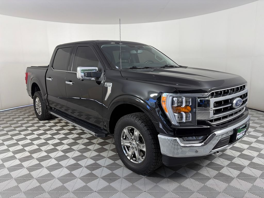 LARIAT CHROME APPEARANCE PACKAGE 2 chrome front tow hooks, Chrome Single-Tip Exhaust, 6 Chrome Running Board, Chrome Door & Tailgate Handles w/Body-Color Bezel, Wheels: 18 Chrome-Like PVD, Chrome 2-Bar Grille w/4 Minor Bars, painted silver surround and background mesh, Chrome Skull Caps on Exterior Mirrors, ENGINE: 3.5L V6 ECOBOOST auto start-stop technology, GVWR: 7,050 lbs Payload Package, 3.31 Axle Ratio, EQUIPMENT GROUP 501A MID Radio: B&O Sound System by Bang & Olufsen, HD radio and 8 speakers including subwoofer, Universal Garage Door Opener, Onboard 400W Outlet, Replaces two (2) front USB charge only ports, 360 DEGREE CAMERA trailer reverse guidance, FORD CO-PILOT360 ASSIST 2.0 Evasive Steering Assist, Intelligent Adaptive Cruise Control w/Stop & Go, lane centering, Speed Sign Recognition, Connected Built-In Navigation, Navigation services require SYNC4 and FordPass Connect (optional on select vehicles), complimentary connect service and the FordPass app (see FordPass Terms for details), Eligible vehicles receive a complimentary 90-day trial of navigation services that begins on the new vehicle warranty start date, Customers must unlock the navigation service trial by activating the eligible vehicle w/a FordPass member account, If not subscribed by the end of the complimentary period, the navigation service will terminate, Connected service and features depend on compatible AT&T network availability, Evolving technology/cellular, ELECTRONIC LOCKING W/3.55 AXLE RATIO, TRANSMISSION: ELECTRONIC 10-SPEED AUTOMATIC selectable drive modes: normal, ECO, sport, tow/haul, slippery, deep snow/sand and mud/rut (STD). Ford LARIAT with Agate Black exterior and Black interior features a V6 Cylinder Engine with 325 HP at 5000 RPM*.