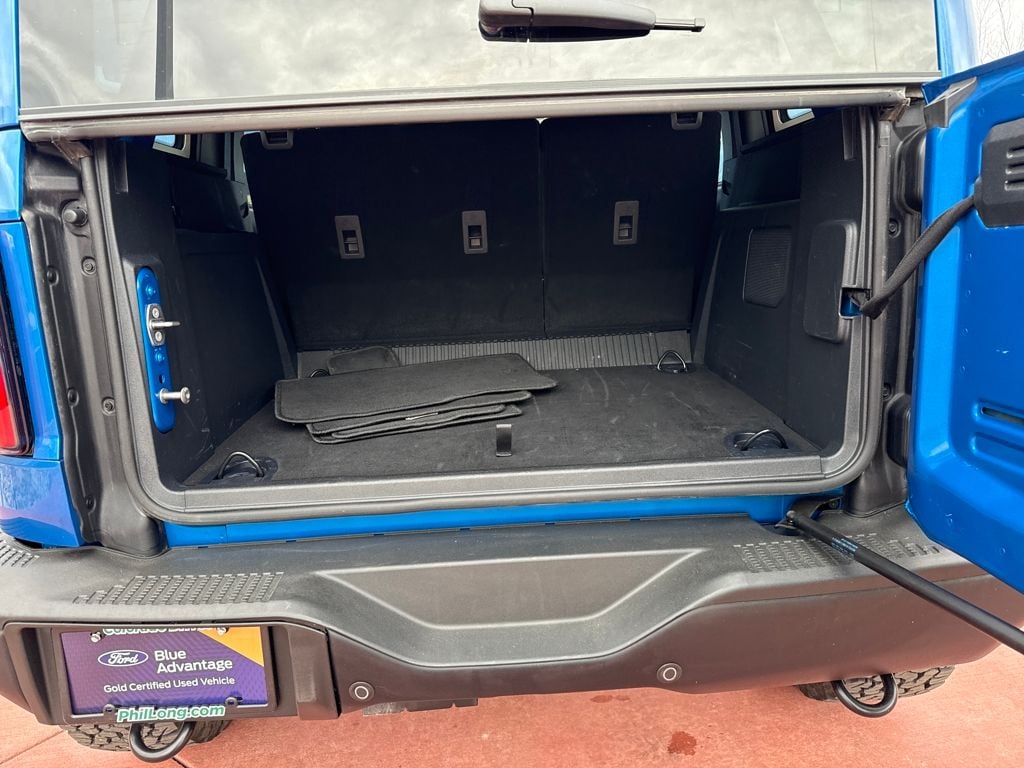 Equipment Group 332A Mid Package (2-Door Intelligent Access w/Lock/Unlock, Ambient Footwell Lighting, Connected Navigation, Dr & Pass Illuminated Sliding Visor Vanity Mirrors, Dual Smart Charging USB Ports, Dual-Zone Electronic Automatic Temperature Control, Front Row Heated Seats, Power Outlet - Back Side of Center Floor Console, and Rear Parking Sensors), 7 Speakers, AM/FM radio: SiriusXM with 360L, Hard Top Sound Deadening Headliner, Power door mirrors, Steering wheel mounted audio controls, 4-Wheel Disc Brakes, 4.7 Axle Ratio, ABS brakes, Air Conditioning, Alloy wheels, AM/FM Stereo, Auto High-Beam Headlamps, Auto High-beam Headlights, Auto-dimming Rear-View mirror, BLIS Blind Spot Information System, Body Color-Painted Hard Top, Brake assist, Compass, Delay-off headlights, Driver door bin, Driver vanity mirror, Dual front impact airbags, Dual front side impact airbags, Electronic Stability Control, Emergency communication system: 911 Assist, Exterior Parking Camera Rear, Front anti-roll bar, Front Bucket Seats, Front Center Armrest, Front fog lights, Front License Plate Bracket, Front reading lights, Front wheel independent suspension, Fully automatic headlights, Heated door mirrors, Heated front seats, Heated steering wheel, Illuminated entry, Integrated roll-over protection, Internet access capable: FordPass Connect, Lane-Keeping System, Leather Shift Knob, Low tire pressure warning, Marine Grade Vinyl Heated Bucket Seats, Occupant sensing airbag, Outside temperature display, Overhead airbag, Overhead console, Panic alarm, Passenger door bin, Passenger vanity mirror, Power steering, Power windows, Pre-Collision Assist w/Automatic Emergency Braking, Radio data system, Rear-View Camera, Rear-Window Defroster & Washer, Remote keyless entry, Security system, SiriusXM w/360L, Speed control, Split folding rear seat, SYNC 4, Tachometer, Telescoping steering wheel, Tilt steering wheel, Traction control, Trip computer, Variably intermittent wipers, Voltmeter, and Wheels: 17" Carbonized Gray-Painted Aluminum.