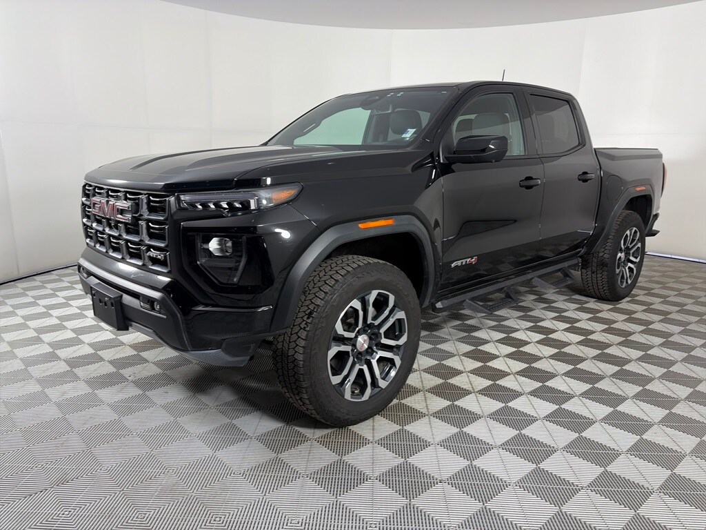 AT4 PREMIUM PACKAGE includes (HX6) Jet Black/Timber perforated leather-appointed front seating surfaces, (A45) Driver memory recall, (A7J) 6-way front passenger seat, (AT9) Power Lumbar front passenger seat, (DA5) Rear Seat Center Arm Rest, (E90) Driver seat back pocket, (K4C) Wireless charging, (KI3) heated steering wheel, (KU9) Ventilated driver and front passenger seats and (Y5W) Canyon Safety Plus Package, TECHNOLOGY PLUS PACKAGE includes (KSG) Adaptive Cruise Control, (UKK) Rear Pedestrian Alert, (UV2) HD Surround Vision and (UV6) Multicolor 6.3 Diagonal Head-Up Display, SUNROOF, POWER INNER SLIDING GLASS with manual shade, WHEELS, 20 X 9 (50.8 CM X 22.9 CM) FULL GLOSS DARK GREY MACHINED FINISH ALUMINUM, BEDLINER, SPRAY-ON (Includes GMC logo on headboard. CANYON SAFETY PLUS PACKAGE includes (UD7) Rear Park Assist, (UFB) Rear Cross Traffic Braking and (UKI) Blind Zone Steering Assist With (ZL6) ProGrade Trailering System, includes (UKW) Blind Zone Steering Assist with Trailering, ENGINE, TURBOMAX (310 hp [231 kW] @ 5600 rpm, 430 lb-ft of torque [583 Nm] @ 3000 rpm) (STD), TRANSMISSION, 8-SPEED AUTOMATIC, 8L80 (STD), TRAILERING PACKAGE includes trailer hitch and 7-pin connector (Includes (JL1) Trailer brake controller. GMC 4WD AT4 with Onyx Black exterior and Jet Black/Timber interior features a 4 Cylinder Engine with 310 HP at 5600 RPM*.