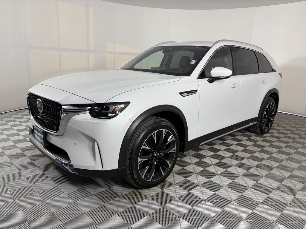 CX-90 PHEV Premium Plus Package trim, Rhodium White Premium exterior and Black interior. GREAT MILES 6,260! Navigation, Moonroof, Third Row Seat, Heated Leather Seats, WiFi Hotspot, Premium Sound System, Aluminum Wheels, AWD, Captains Chairs, Apple CarPlay®. AND MORE!