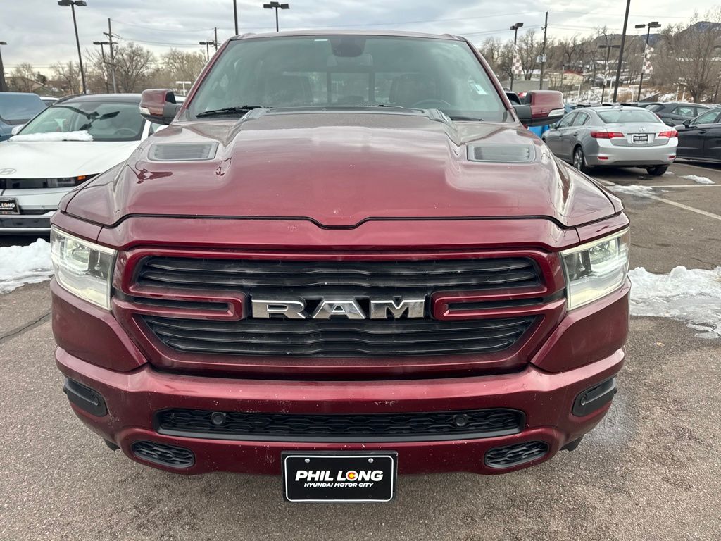 Laramie Level 1 Equipment Group (Single Disc Remote CD Player), Quick Order Package 25H Laramie, Sport Appearance Package (#1 Seat Foam Cushion, 3 Rear Seat Head Restraints, 4 Way Front Headrests, Driver Seat Memory, Front Seat Back Map Pockets, Heated Front Seats, Heated Steering Wheel, Leather Trimmed Bucket Seats, Power 4-Way Driver Lumbar Adjust, Power 4-Way Passenger Lumbar Adjust, Power 8-Way Driver & Passenger Seats, Ventilated Front Seats, and Wheels: 20" x 9" Premium Painted w/Inserts), 10 Speakers, 3.21 Rear Axle Ratio, 4-Wheel Disc Brakes, 48V Belt Starter Generator, 8.4" Touchscreen Display, ABS brakes, Adjustable pedals, Air Conditioning, Alloy wheels, AM/FM radio: SiriusXM, Anti-Spin Differential Rear Axle, Apple CarPlay, Apple CarPlay/Android Auto, Audio memory, Auto-dimming door mirrors, Auto-dimming Rear-View mirror, Automatic temperature control, Brake assist, Bumpers: chrome, Compass, Delay-off headlights, Driver door bin, Driver vanity mirror, Dual front impact airbags, Dual front side impact airbags, Electronic Stability Control, Front anti-roll bar, Front Center Armrest w/Storage, Front dual zone A/C, Front fog lights, Front reading lights, Front wheel independent suspension, Fully automatic headlights, Garage door transmitter, Google Android Auto, GPS Antenna Input, Heated door mirrors, Heated front seats, Heated steering wheel, Illuminated entry, Integrated Center Stack Radio, Leather steering wheel, Leather Trim 40/20/40 Bench Seat, Low tire pressure warning, Memory seat, Occupant sensing airbag, Outside temperature display, Overhead airbag, Overhead console, Panic alarm, ParkView Rear Back-Up Camera, Passenger door bin, Passenger vanity mirror, Pedal memory, Power door mirrors, Power driver seat, Power passenger seat, Power steering, Power windows, Radio data system, Radio: Uconnect 4 w/8.4" Display, Rear anti-roll bar, Rear seat center armrest, Rear step bumper, Rear Underseat Compartment Storage, Rear window defroster, Remote keyless entry, Security system, SiriusXM Satellite Radio, Speed control, Split folding rear seat, Steering wheel mounted audio controls, Tachometer, Telescoping steering wheel, Tilt steering wheel, Traction control, Trailer Brake Control, Trip computer, Turn signal indicator mirrors, Variably intermittent wipers, Ventilated front seats, Voltmeter, and Wheels: 18" x 8" Aluminum Base Painted.