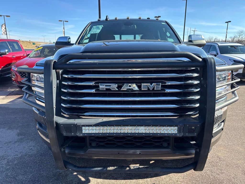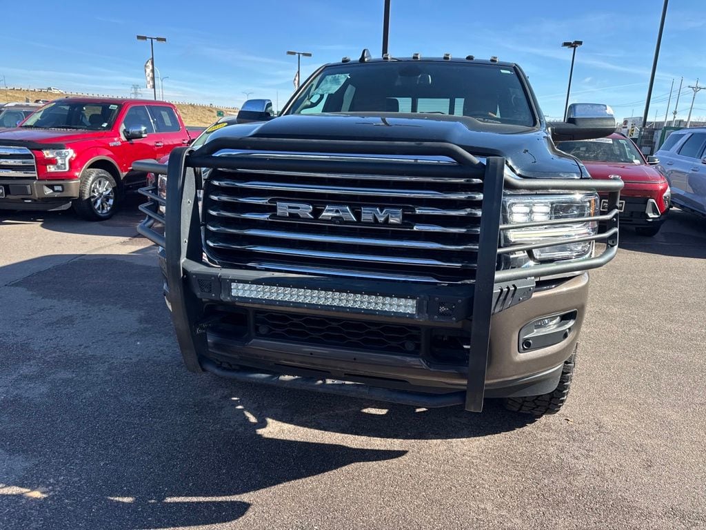 Longhorn Level 1 Equipment Group (12" Touchscreen Display, 17 Speaker harman kardon Premium Sound, 4G LTE Wi-Fi Hot Spot, Alexa Built-In, All R1 High Radios, All Radio Equipped Vehicles, Apple CarPlay, Connected Travel & Traffic Services, Connectivity - US/Canada, Disassociated Touchscreen Display, For Details, Visit DriveUconnect.com, For More Info, Call 800-643-2112, Global Telematics Box Module (TBM), Google Android Auto, GPS Antenna Input, GPS Navigation, HD Radio, Integrated Voice Command w/Bluetooth, Off-Road Information Pages, Power Deployable Running Boards, Radio: Uconnect 5 Nav w/12.0" Display, Ramcharger Wireless Charging Pad, Selectable Tire Fill Alert, SiriusXM Radio Service, and SiriusXM w/360L), Protection Group, Quick Order Package 2HK Longhorn, Towing Technology Group (CTR Stop Lamp w/Cargo View Camera, Surround View Camera System, and Trailer Reverse Guidance), 10 Speakers, 115V Auxiliary Rear Power Outlet, 2 Way Rear Headrest Seat, 220 Amp Alternator, 3.73 Axle Ratio, 4 Way Front Headrests, 4-Wheel Disc Brakes, 5th Wheel/Gooseneck Towing Prep Group, 8.4" Touchscreen Display, ABS brakes, Active Noise Control System, Adaptive Steering System, Adjustable pedals, Air Conditioning, Air Suspension Decal, Alloy wheels, AM/FM radio: SiriusXM with 360L, Apple CarPlay/Android Auto, Audio memory, Auto High-beam Headlights, Auto Level Rear Air Suspension, Auto-dimming Rear-View mirror, Automatic temperature control, Blind Spot & Cross Path Detection (DISC), Brake assist, Bucket Seats, Bumpers: chrome, Center Hub, Chrome Tow Hooks, Clearance Lamps, Compass, Dash Pass Thru Wire Circuits, Delay-off headlights, Driver door bin, Driver vanity mirror, Dual front impact airbags, Dual front side impact airbags, Electronic Stability Control, Electronically Controlled Throttle, Folding Flat Load Floor Storage, Front anti-roll bar, Front Bucket Seats, Front Center Armrest w/Storage, Front dual zone A/C, Front fog lights, Front License Plate Bracket, Front reading lights, Front Seat Back Map Pockets, Full Length Premium Upgraded Floor Console, Fully automatic headlights, Garage door transmitter, Genuine wood console insert, Genuine wood dashboard insert, Genuine wood door panel insert, Heated door mirrors, Heated Front Seats, Heated front seats, Heated rear seats, Heated Second Row Seats, Heated Steering Wheel, Heated steering wheel, High Back Seats, I/P Mounted Auxiliary Switches, Illuminated entry, Integrated Center Stack Radio, Leather steering wheel, Low tire pressure warning, Manufacturer's Statement of Origin, Memory seat, MOPAR Deployable Bed Step, Navigation System, Occupant sensing airbag, Outside temperature display, Overhead airbag, Overhead console, Panic alarm, ParkView Rear Back-Up Camera, Passenger door bin, Passenger vanity mirror, Pedal memory, Power 2-Way Driver Lumbar Adjust, Power 2-Way Passenger Lumbar Adjust, Power Adjust 8-Way Driver Seat, Power Adjust 8-Way Front Passenger Seat, Power door mirrors, Power driver seat, Power passenger seat, Power steering, Power windows, Premium Filigree Leather Seats, Radio data system, Radio: Uconnect 5 Nav w/8.4" Display, Radio/Driver Seat/Mirrors/Pedals Memory, Rain sensing wipers, Rear 60/40 Folding Seat, Rear anti-roll bar, Rear reading lights, Rear seat center armrest, Rear step bumper, Rear window defroster, Remote keyless entry, Security system, Speed control, Split folding rear seat, Steering wheel mounted audio controls, Tachometer, Tilt steering wheel, Tip Start, Traction control, Trailer Tire Pressure Monitoring System, Trip computer, Turn signal indicator mirrors, Variably intermittent wipers, Vendor Painted Cargo Box, Vendor Painted Cargo Box Tracking, Ventilated Front Seats, Ventilated front seats,